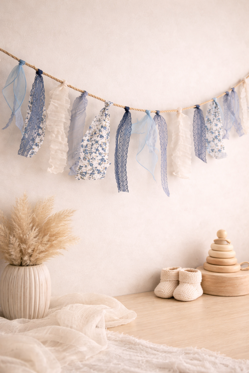 Vier de komst van een nieuw leven met onze stijlvolle Geboorteslinger blauw van 10 meter. Deze elegante lintjesslinger in zachte blauw- en neutrale tinten zorgt voor een rustige, warme en sfeervolle uitstraling. Perfect voor geboortes, babyshowers, kraamfeesten en het decoreren van de babykamer, tuin of feestlocatie.